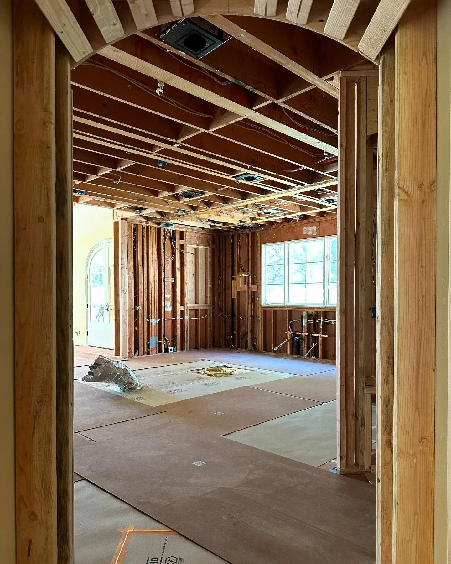 View fullsize Rollin’ in after the demo crew, dusty ram board everywhere, bare walls but those few last vestiges of crumbly old drywall in the bottom corners, and a blank slate for the designer and clients to draw their dream kitchen at our renovation projec