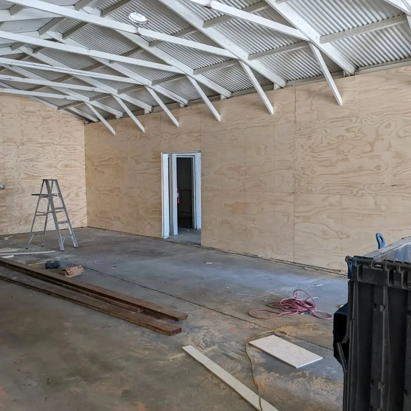 View fullsize The owner of this warehouse wanted the walls cleaned up and stabilized...96 sheets of plywood and ~2,000 staples later it'll be here for another 80 years...