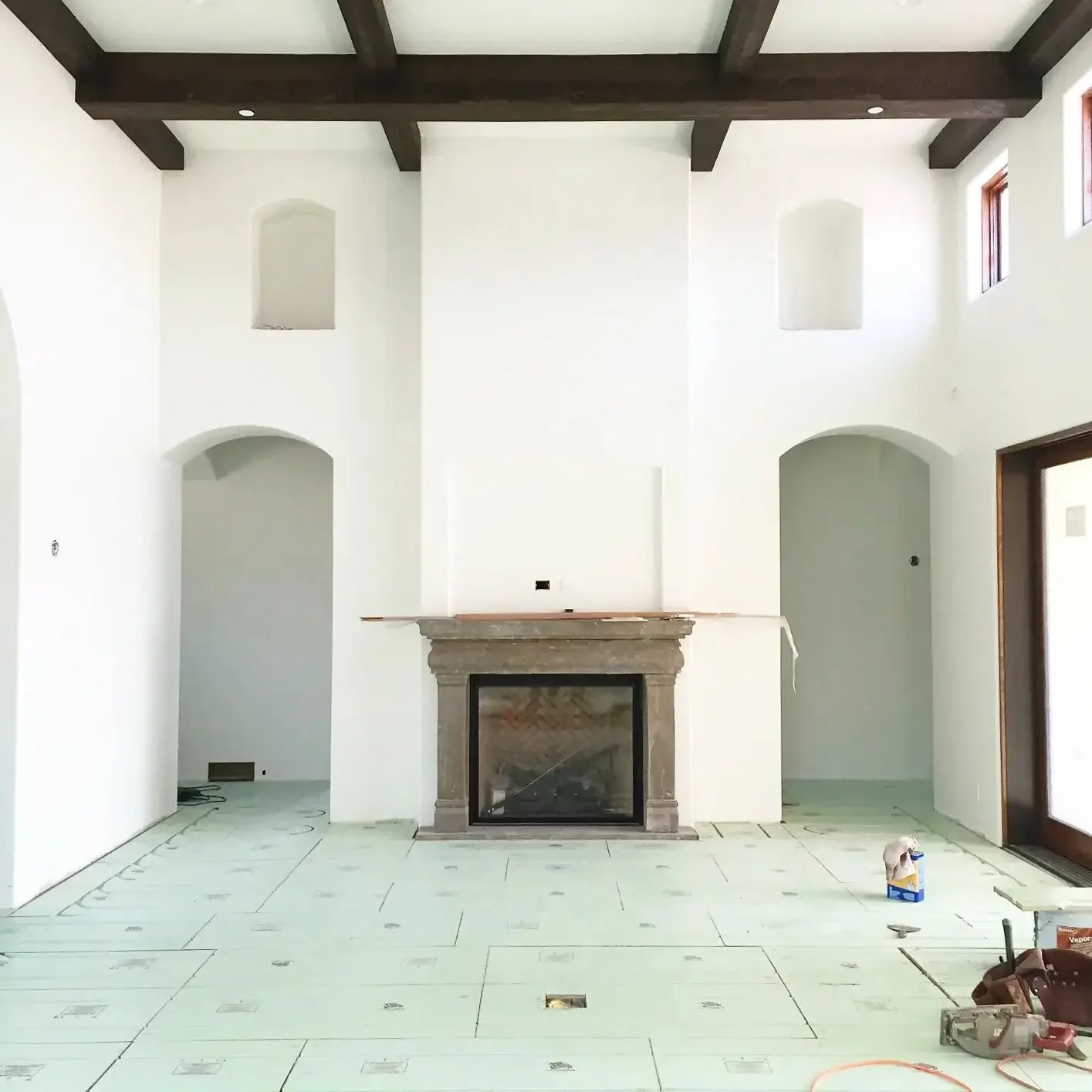 View fullsize A couple post-install photos of @warmboard radiant heat floor boards, glued & screwed to the concrete slab. This seafoam green might just make a lovely finish floor color...🍵