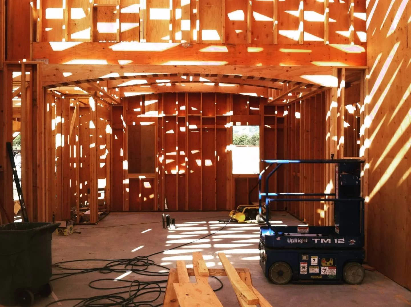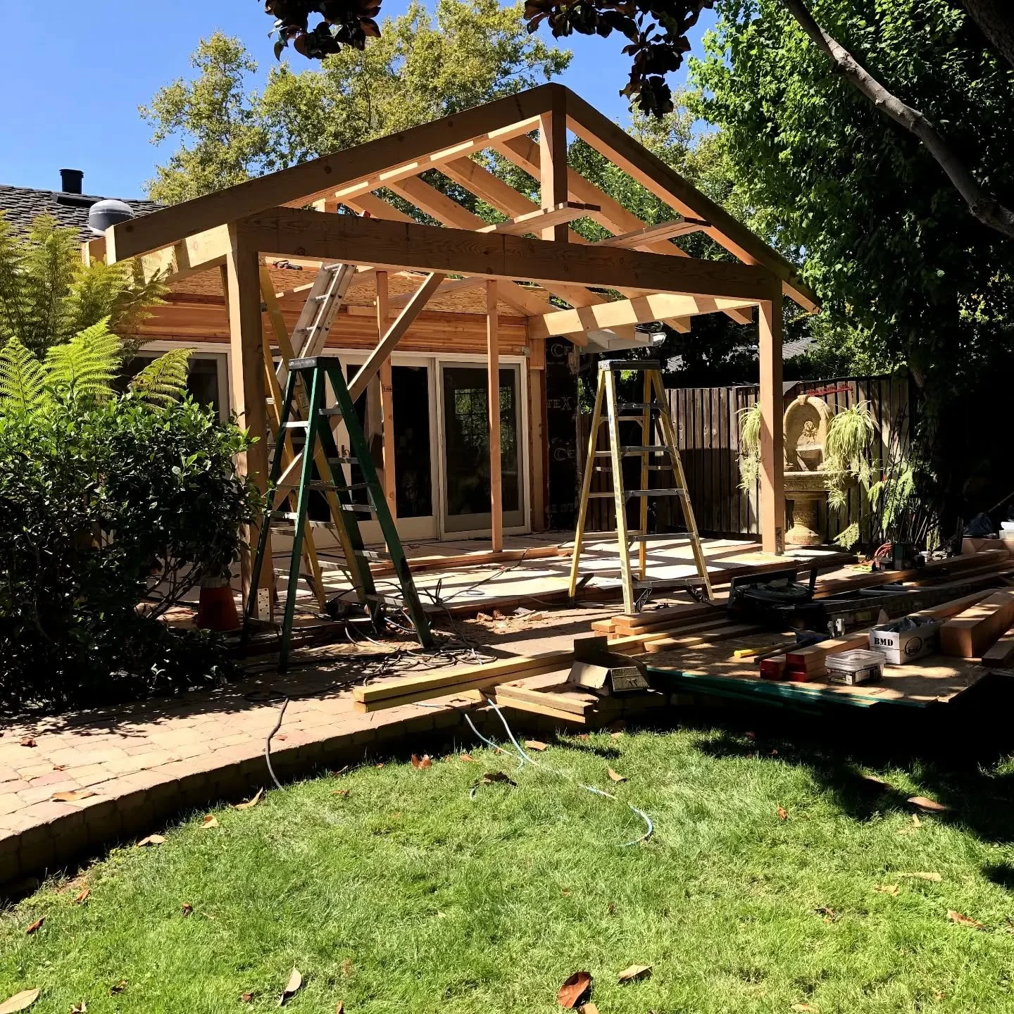 View fullsize Timber frame patio overhang: all Douglas fir, drying out in the California sun